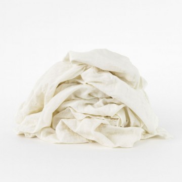 Chiffon d’essuyage blanc crème en coton, fabriqué à partir de vêtements recyclés, conditionné en carton de 10 kg. Ce chiffon est particulièrement adapté aux travaux de mécanique lourde et aux tâches moins délicates.